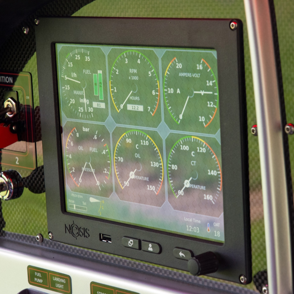 Die TOPAZ 600 ist bereits in der Serienausstattung mit modernster Glascockpit-Technologie ausgerüstet. Das Kanardia NESIS III bietet alle wichtigen Flug- und Motordaten in einem intuitiven Touch-Display – übersichtlich, zuverlässig und voll integriert.