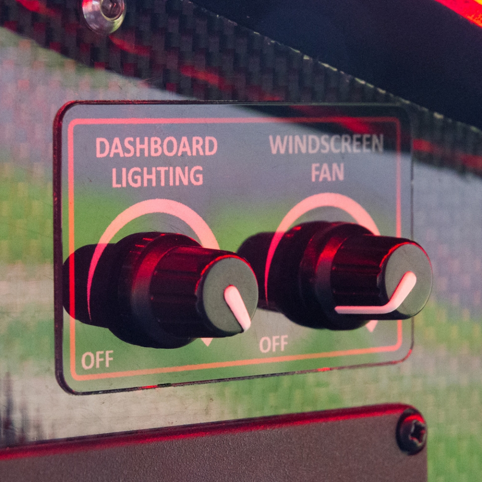 - Ergonomischer Steuerknüppel: gefertigt aus Carbon, schwarz lackiert
